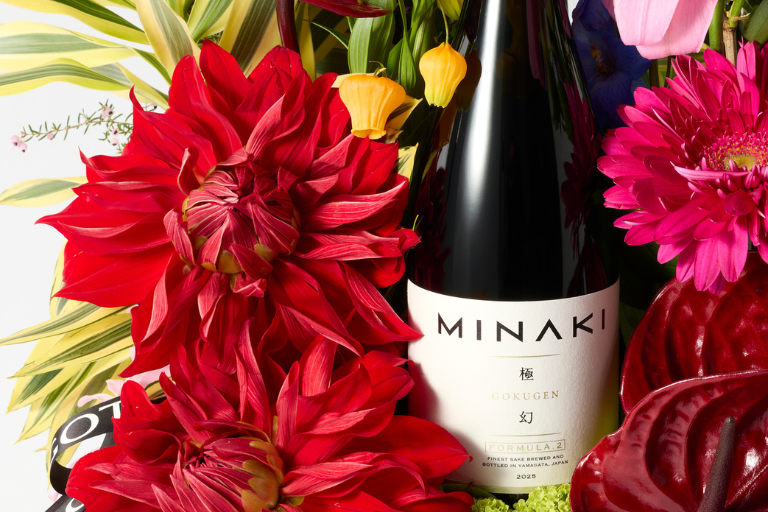 “MINAKI,” quietly placed within a matte black box, carries a clear, refined umami nurtured by the northern land, along with a dignified, lingering finish. Paired with the vibrant flowers, it adds a quiet sense of depth and presence to the gift.